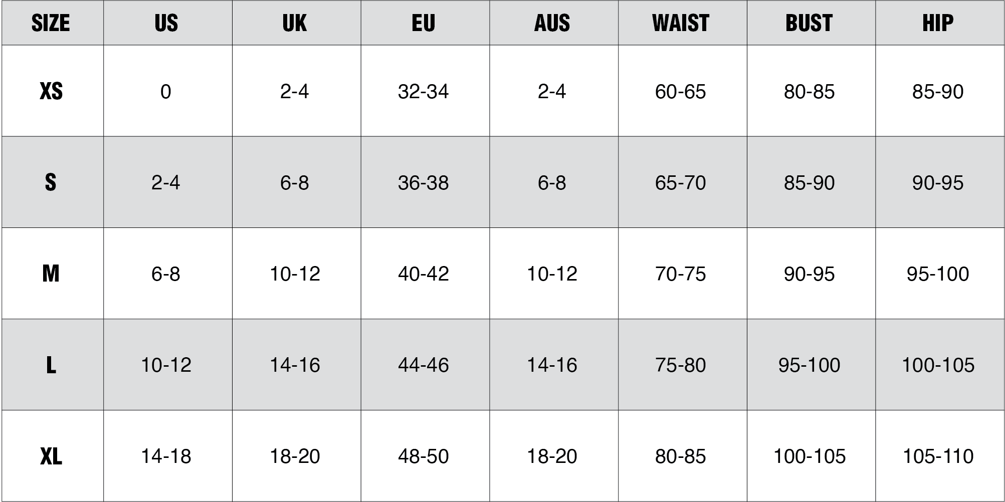 INTERNATIONAL SIZE CHART